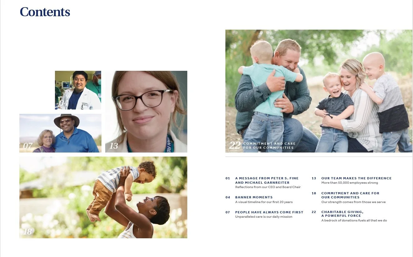 Banner Health enlisted our team to design a report to commemorate their 20th anniversary.